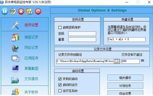 目击者监控软件功能概览是一款专业的远程监控工具,专为设备管理设计,支持键盘记录、屏幕截图、网址追踪等多种实用功能。软件界面简洁直观,操作简便易上手,用户可轻松设置定时监控并保存文件,高效提升监管效率。无论用于家庭监护还是企业管理,它都能提供稳定可靠的服务,兼容XP/Win7/Win8等系统,32位和64位通用,确保广泛适用性。