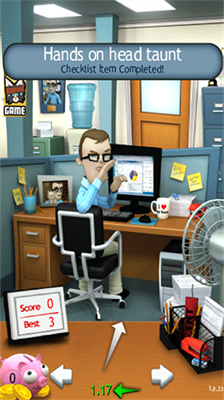 办公室捣蛋鬼是一款以职场生活为主题的创意互动游戏。在重复的日常工作中积累的压力,都能通过游戏中的趣味玩法得到释放。当看到屏幕上呆萌的虚拟同事时,不妨拾取场景中的特殊道具,通过精准投掷触发各种爆笑反应。游戏特别设计了动态反馈系统,目标角色会根据你的操作做出表情变化和语音互动,甚至会在你失误时发出俏皮的调侃。