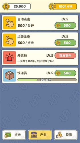 这款创新经营模拟游戏将带您体验从零开始的财富积累之旅。通过独特的资源管理机制,玩家在享受休闲乐趣的同时,还能锻炼商业决策能力。游戏采用直观的交互设计,基础货币可持续增长,为策略规划提供更多可能性。