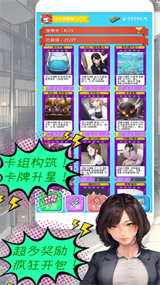 游戏内设置六大稀有度等级与五种功能类型的卡牌组合,通过任务奖励与挂机收益获取卡包进行收集。稀有卡包可开出特殊效果卡牌,配合升星系统提升卡组整体实力,形成独特的策略搭配体系。