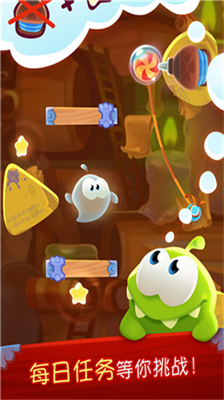 Om Nom可幻化为飞鸟穿越高空障碍,切换鱼形态畅游水域关卡,缩小体型通过狭窄通道,每种形态对应独特物理特性,大幅拓展关卡设计维度。
