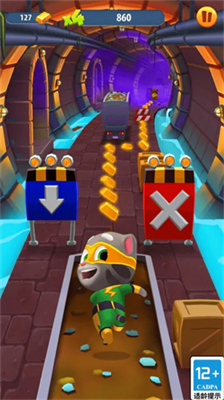 游戏采用直观的触控操作模式,通过上下滑动即可完成跳跃、滑铲等动作。玩家需要操控角色在收集金条的过程中灵活躲避障碍物,利用加速道具突破复杂地形。随着游戏进程推进,可解锁更多角色外观和特殊技能,例如二段跳跃、磁铁吸附等趣味玩法。
