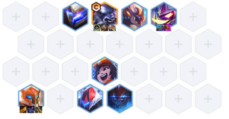 核心坦克阿利斯塔需配备机甲纹章搭配泰坦套装,救赎与汲取剑根据敌方阵容灵活调整。主C德莱文优先合成羊刀轻语,副C稻草人配置法系套装,离子火花可有效克制护盾体系。