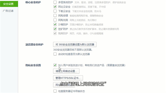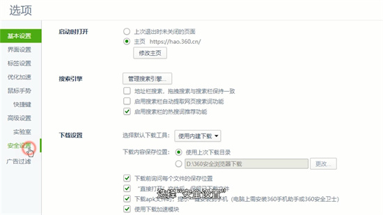 在设置面板左侧导航栏中,找到并点击安全防护分类标签。该模块集成了隐私保护、广告过滤等核心安全功能,用户需重点查看账户安全相关配置项。
