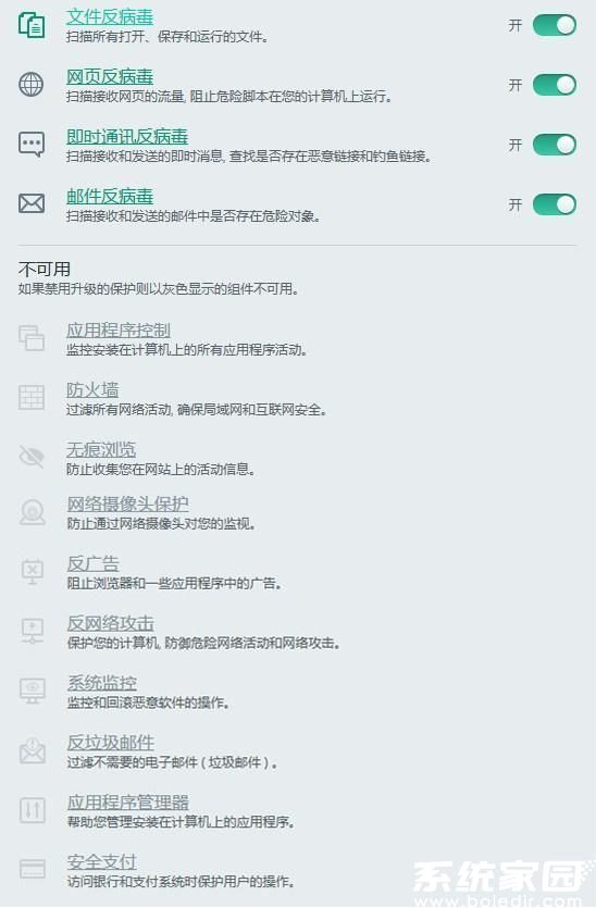 软件界面显著位置设有版本升级入口,用户可随时查看付费功能模块的详细介绍。免费版本提供完整的年度试用周期,期间不限制核心防护功能的使用。试用期结束后仍可继续使用基础防护,但部分高级特性将转为提示状态。