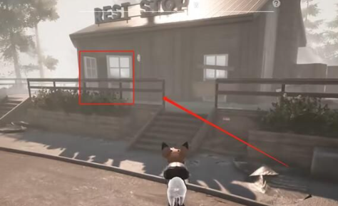 2、目标建筑具有显著红瓦尖顶特征,外墙上「REST STOP」金属标识在阳光照射下会产生反光效果。操控角色贴近建筑南侧破损围栏,利用冲刺技能跃入二楼阳台更为便捷。