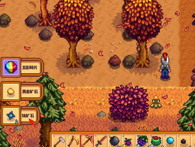 1、陨石坠落事件:当玩家触发夜间特殊音效后,次日农场景观区域会出现巨型陨石。使用黄金十字镐及以上等级工具进行开采,可稳定获得6单位铱矿。该事件具有随机性,建议优先升级工具提高开采效率。