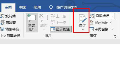 2、在校对工具组中找到红色"修订"按钮 点击即可激活追踪功能