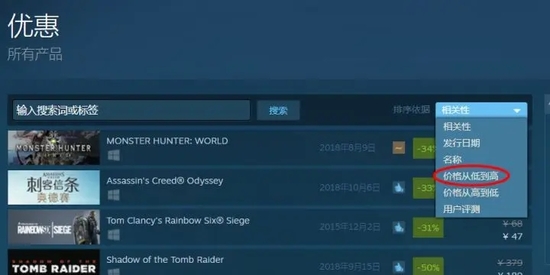 进入商店首页后选择【特惠】分类,使用价格筛选功能进行升序排列